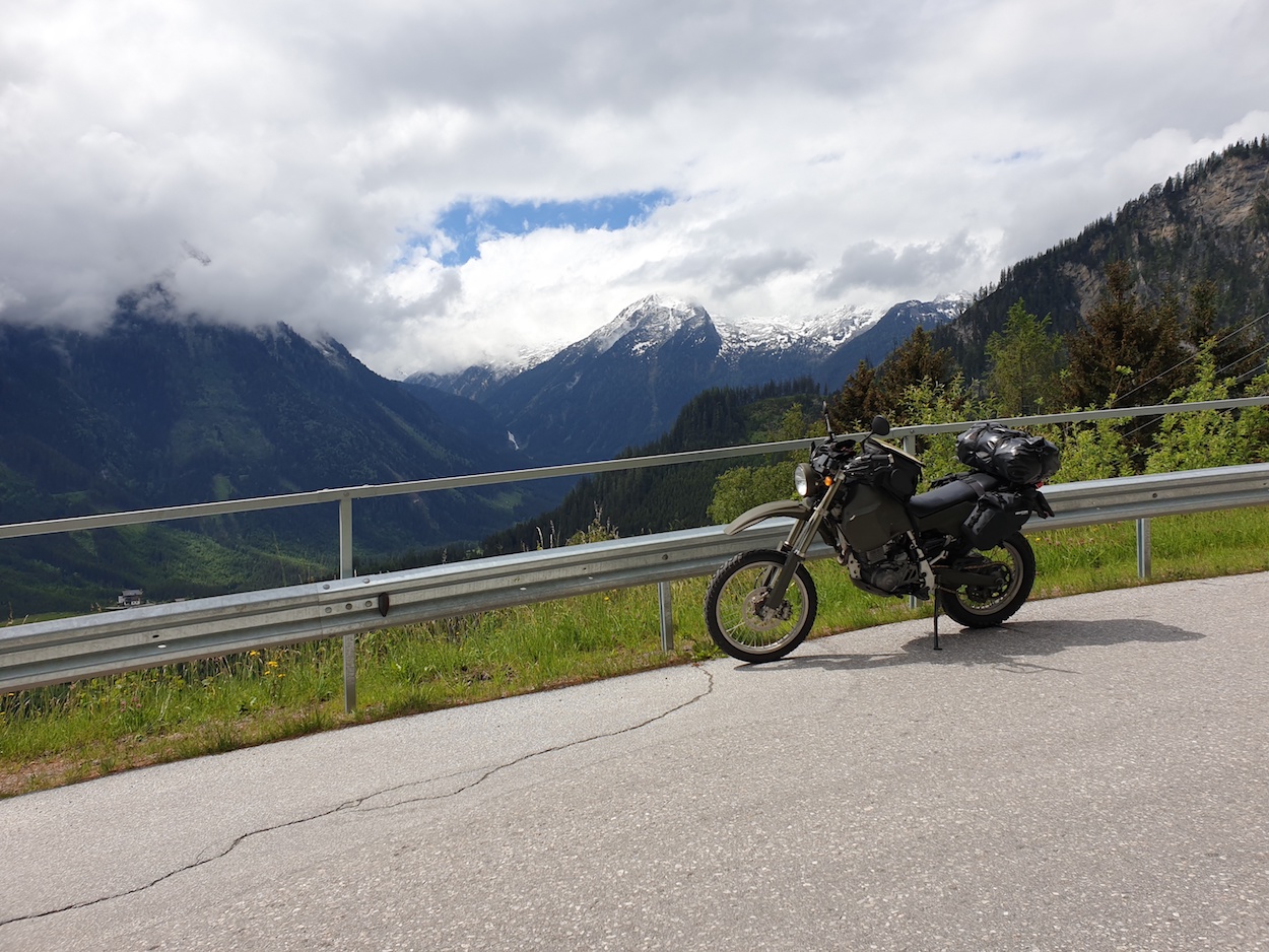 Ich bin am 29. um 0900 Uhr los, durch das Inntal ins Zillertal und rauf auf den Gerlos. Natürlich die alte Gerlosstraße,, mit prachtvollem Ausblick auf die Krimmler Wasserfälle.