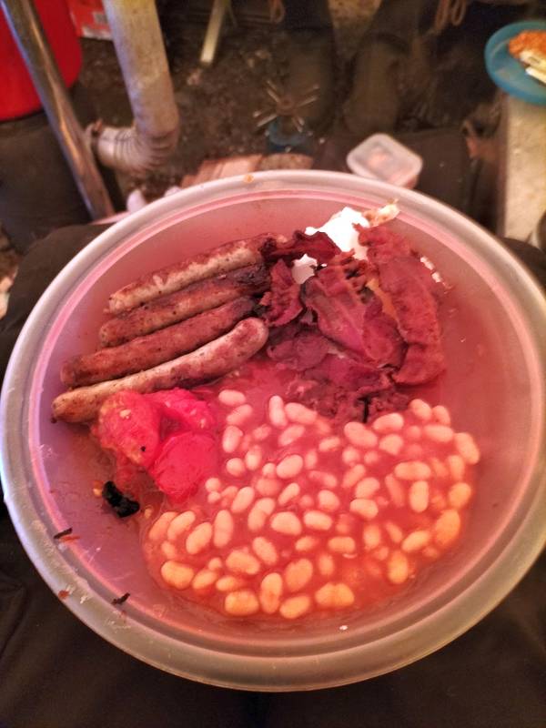 Das Treffen an sich hatte für mich Premiere, das erste Mal ist mein Zelt hinich gegangen, trotz aller Abspannungen: Mittelstange ist jetzt eine Banane, Eingangsgestänge gebrochen und ein 60x50cm großes Loch in der Zeltwand. Schad.