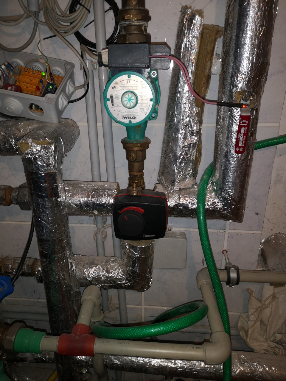 Im Kreislauf zu den Heizkörpern hängt auch die Terme drin und steuert die Heizungspumpe an.