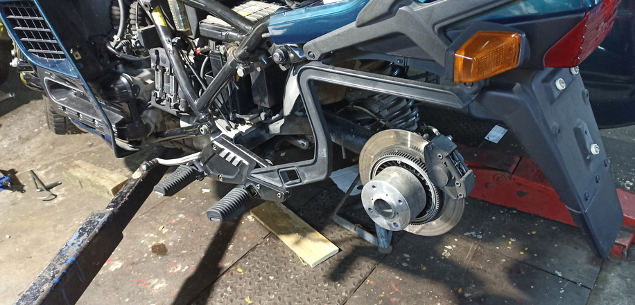 Die LT, wie bisher die anderen Gespanne, mit der PKW Hebebühne anzuheben ging nicht. Also etwas tricksen. 3 Arme von der Hebebühne und den Wagenheber eingesetzt , damit ich mir etwas Bodenfreiheit verschaffen kann.