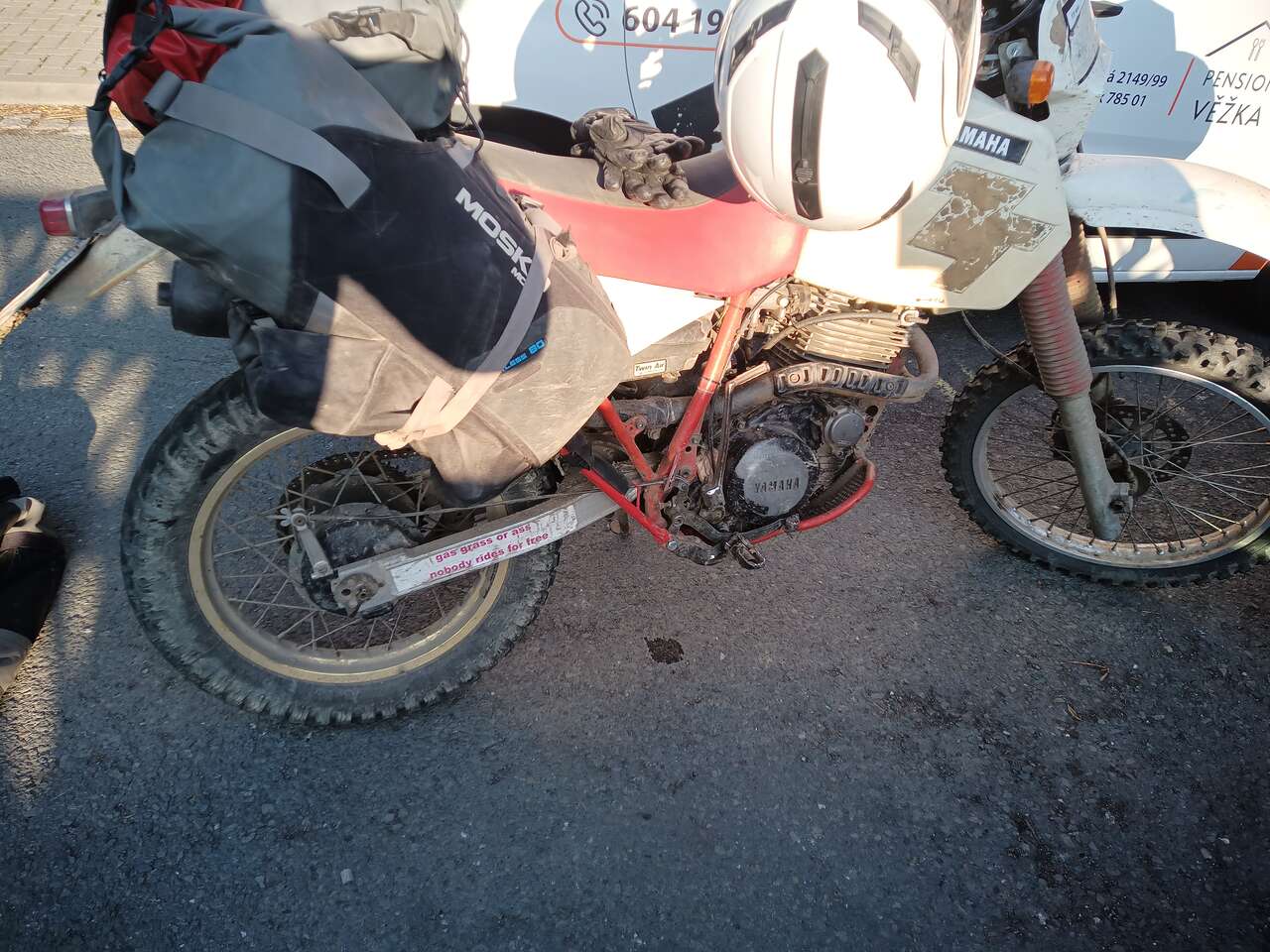 Wir müssen also das Loch irgendwie zubekommen und den Freilauf ausrücken, dann könnten wir die TT sicher anschieben, um ins nächste Dorf zu kommen.