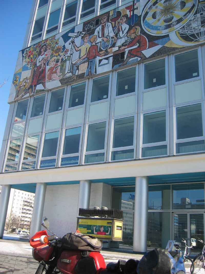 Der zweite Tag, 16.3.2013: 52 Kilometer kreuz und quer in Berlin mit der MZ unterwegs:Nach dem Frühstück: Guten Morgen, Igelchen:Die MZ genehmigte sich eine Mütze voll Schlaf:Ich wusste es! Mit Mühsal zu den Sternen:Das Hausgemälde am Alex:East Side Gallery:Oberbaumbrücke zwischen Ost und West:Spitzenkugel in der Ferne und East Side Gallery:Das war der zweite Tag. Fotos des dritten und vierten Tages sowie ein kleiner Reisebericht der Rückreise werden folgen. Und weshalb sie es das allererste Mal nicht auf eigenen Rädern nach Hause schaffte...