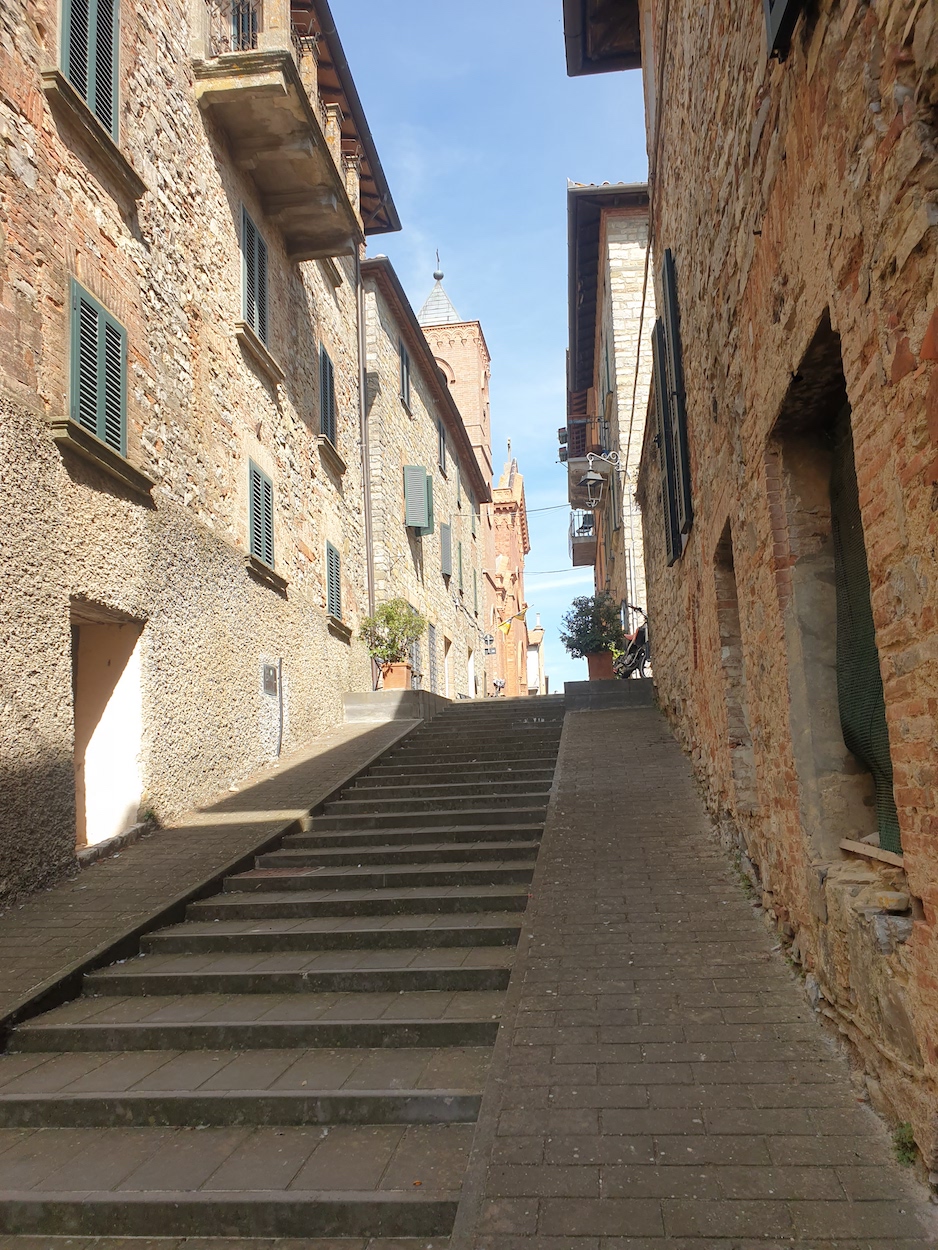 Montegabbione. Leider war ich zu langsam beim fotografieren, denn über diese Treppe kam mir eine beladene (!) Ape entgegen gefahren ...