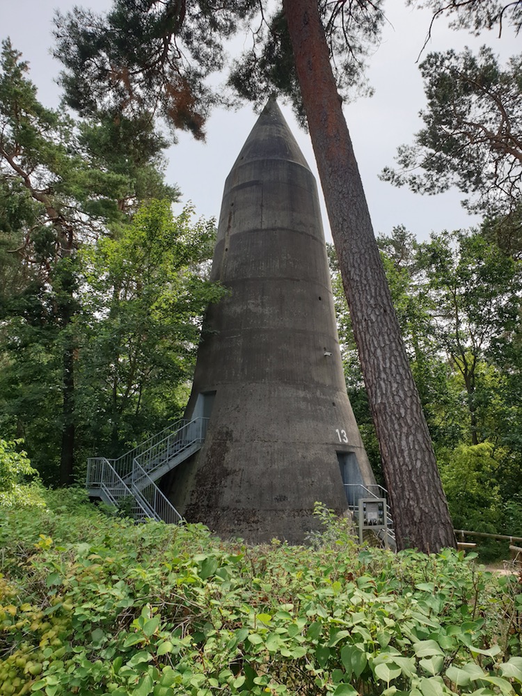 Nickname-bedingt bin ich dann weiter nach Wünsdorf. Dort waren bis 1994 die Russen mit Ihrem Hauptquartier vertreten. Davor war es Führungszentrale der Wehrmacht. Davor Schießplatz der preußischen Armee. Aus der Zeit bis 1945 sind die beiden Führungs- und Kommunikationsbunker-Anlagen "Zeppelin" und "Maybach" erhalten. Das musste ich doch wenigstens mal gesehen haben, zumindest von außen. Eine bizarre Anlage, aus der Raketen-gleich die Spitzbunker herausragen.