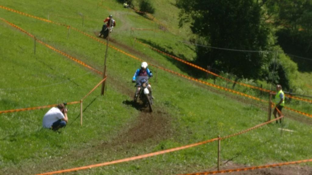 Wollte von der Tonnerhütte in's Fahrerlager um einen Schlauch zu holen. Mit dem geliehenen Mopped eines Mitstartes ( des is ja glei da unten, du hast ja über 20 min. Zeit - des geht si locker aus) einen Schlauch geholt und dann im racing-Tempo zurück zur Tonnerhütte gerade eben in der Stempelminute angekommen. Von wegen ist ja nicht weit