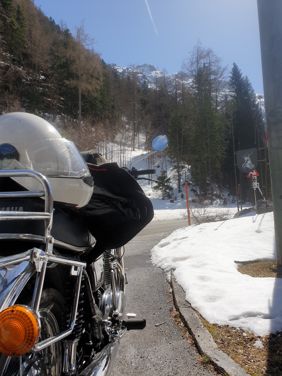 Und obwohl diese Temperatur zu dieser Zeit echt pervers ist ist, habe ich die XS genommen und bin mit dem Ziel Samnaun - also Schweiz - losgebrummt.