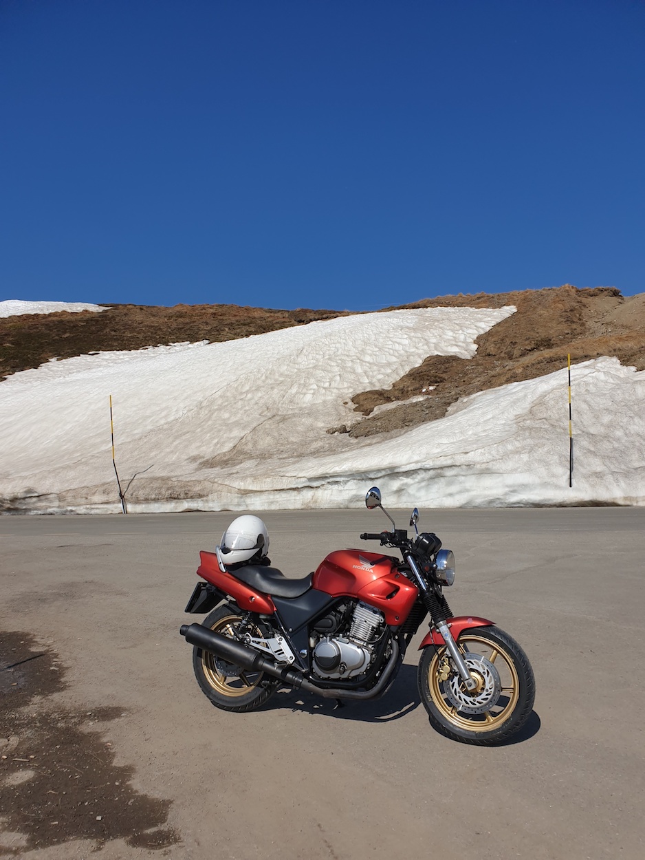Oben musste man ein wenig aufpassen, denn die Schmelzwasserrinnsale waren im Schatten halt gefroren. Und es hat dort nordseitig noch ordentlich Schnee, so dass auch der Lift noch fährt. Und es ist schon noch kräftig Salz auf der Straße, was jetzt auch nicht verwundert, denn der Jaufen ist einer der wenigen hohen Pässe, die ganzjährig offen gehalten werden.