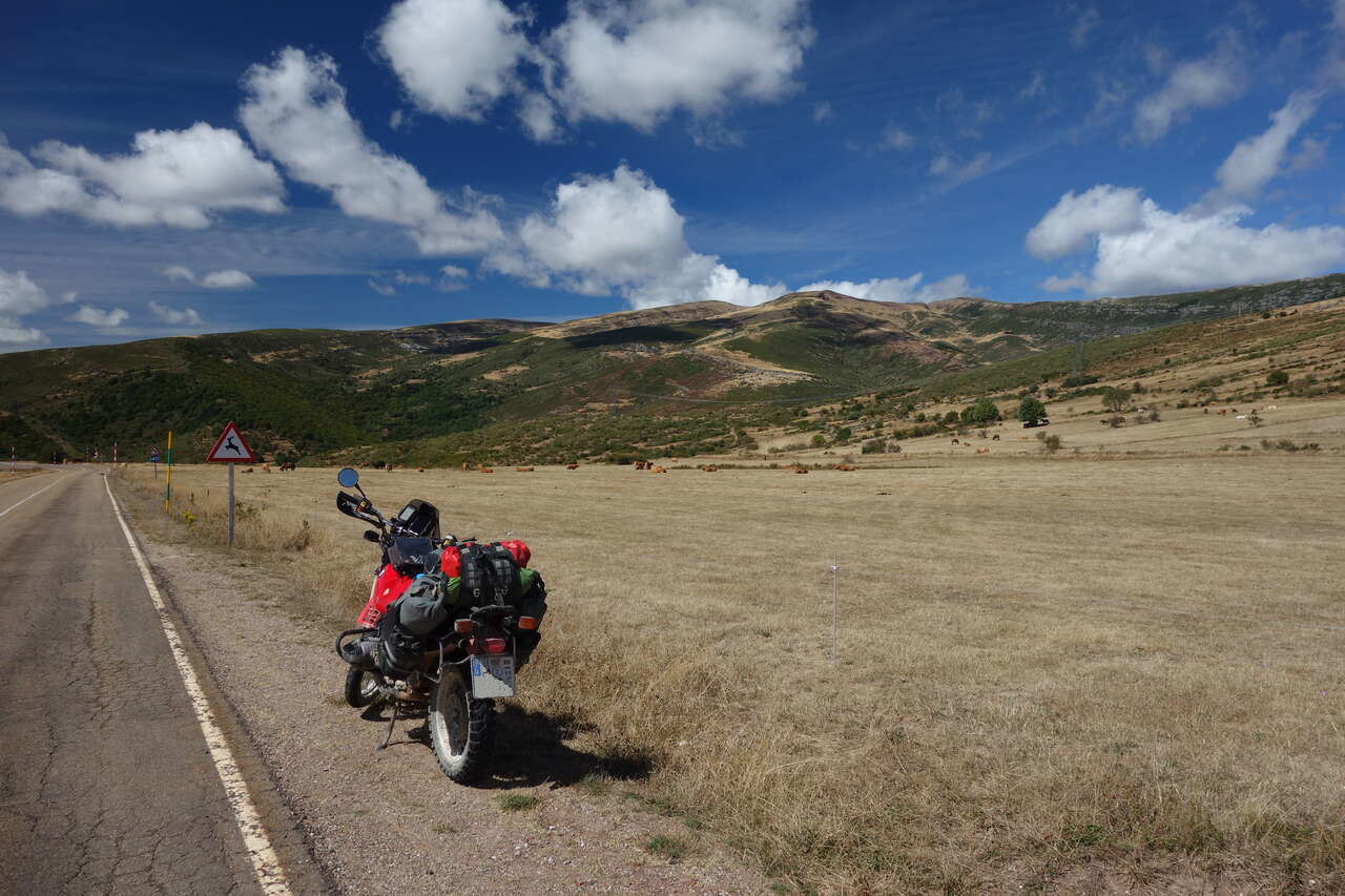 So langsam wird mir bewusst, dass ich zu langsam bin, Spanien ist groß. Immerhin ist es lange hell, also fahr ich stur Richtung Westen, die Sonne immer vor mir hertreibend. Irgendwann gewinnt sie doch, also such ich mir einen Campingplatz und finde ihn am „Monument des Pastors“. Wer war er? Keine Ahnung, aber hier kann ich mein Zelt aufstellen.