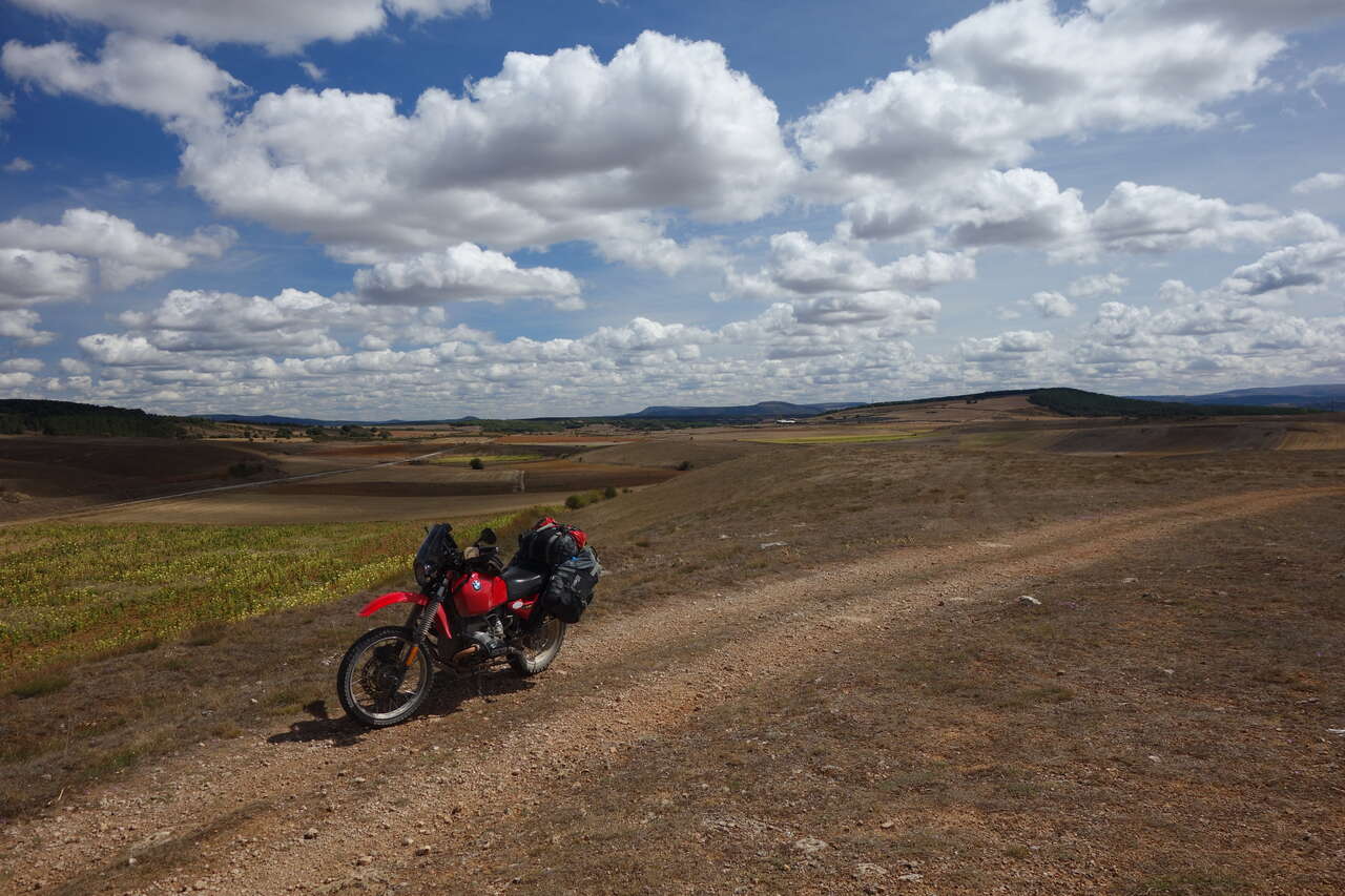 Das Gerumpel wurde dann selbst mir zuviel, also bleib ich erstmal auf der Strasse, zumindest bis zu den Bardenas Reales. In einem Dorf noch schnell vor der Siesta getankt und eingekauft und weiter gehts.