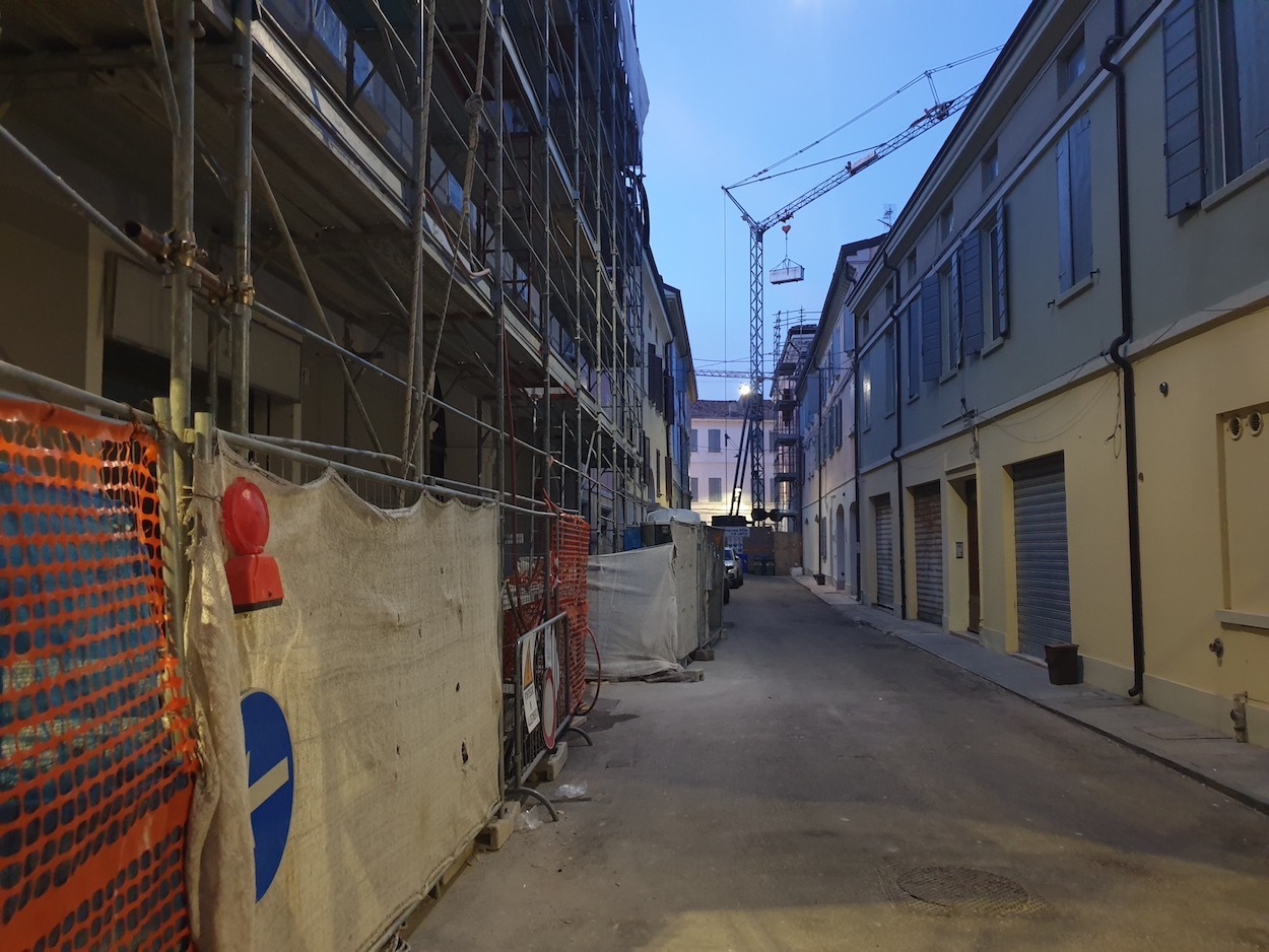 Ich bin dann dort abwärts in Renotal und diesem gefolgt bis kurz vor Bologna. Und gegen 1800 Uhr hatte ich schließlich mein Hotel in Mirandola nordöstlich von Modena erreicht. Es ist dies die Residenzstadt einer der vielen oberitalienischen Renaissancefürsten-Familien gewesen, hier der Pico della Mirandola.Die Kultur spielte neben vielem anderen hier eine große Rolle, was man der Stadt in Umrissen auch noch ansieht. In Umrissen deshalb, weil sie Opfer des Erdbebens von 2012 geworden ist und immer noch großflächig hinter Gerüsten verborgen ist. Leider ...