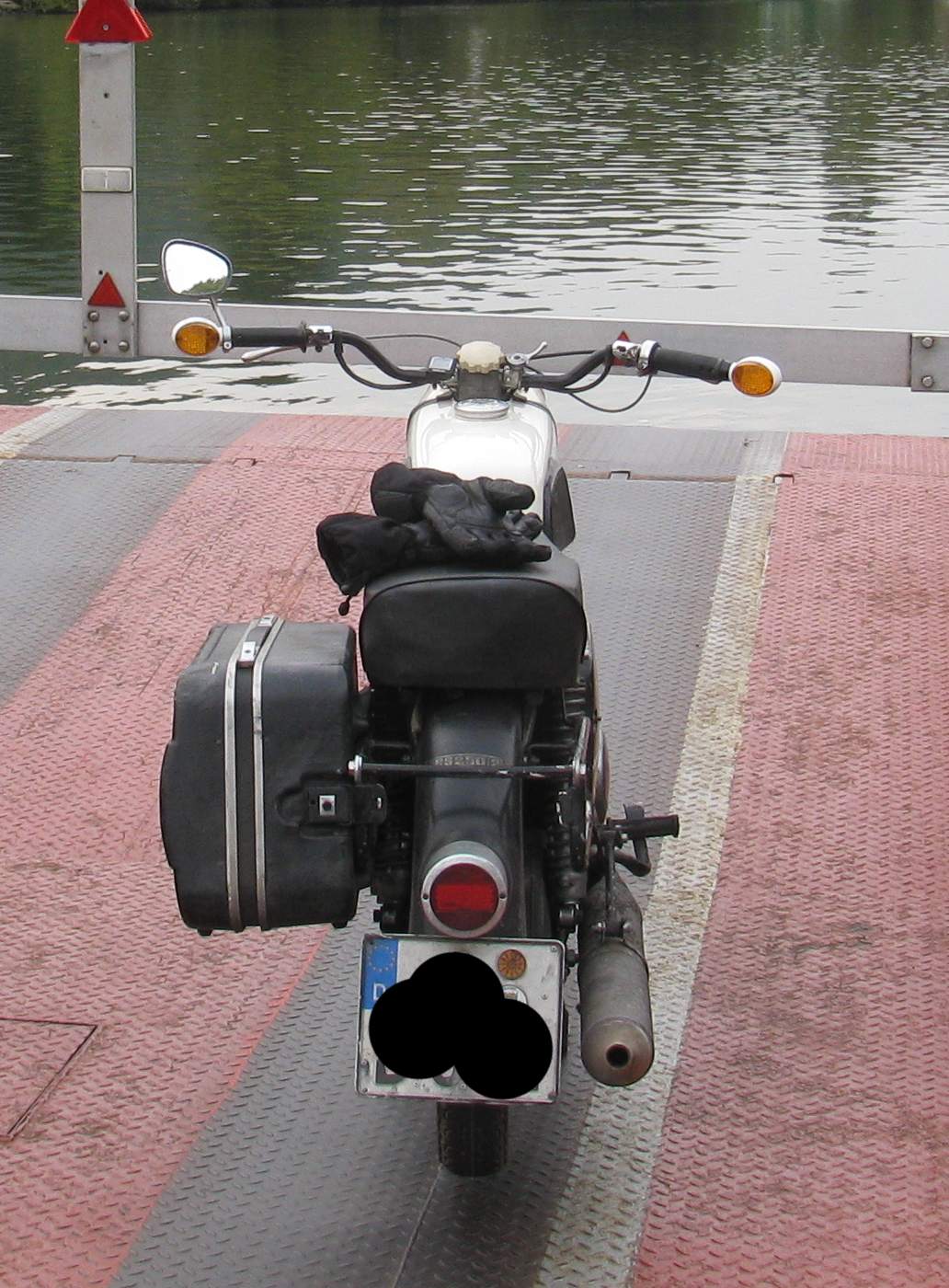 Der Lenker ist ein umgebauter Lenker von meiner ehemaligen DR350 (man, das war 'ne geile Kiste!). Wirklich schön ist der auch nicht, aber beim Gespannfahren unheimlich angenehm zu fahren.