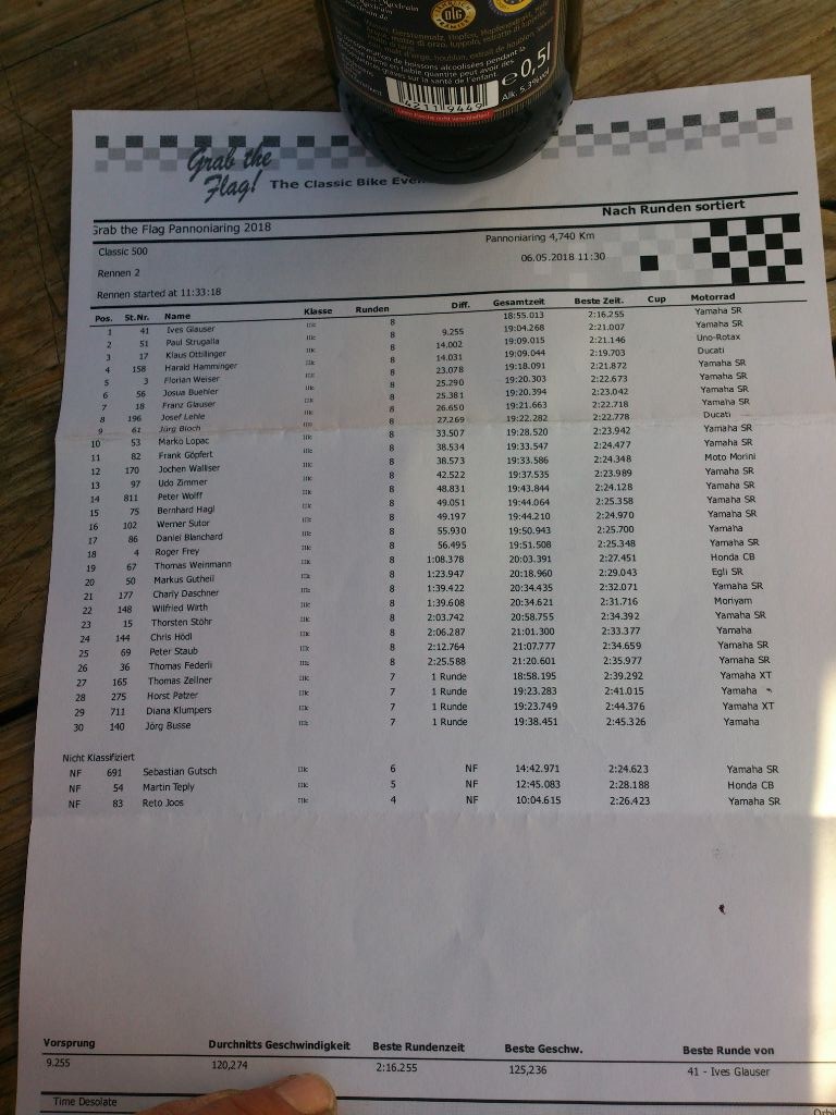 Habt ihr vom Sonntagsrennen so eine Ergebnisliste?