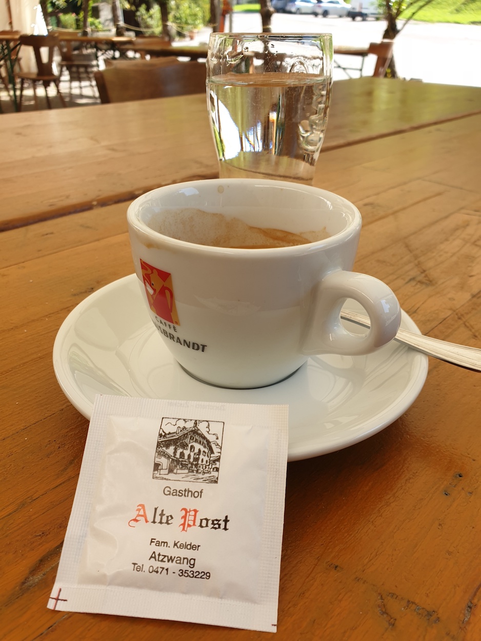 Dann die alte Reichsstraße über en Ritten bis kurz vor Barbican und dort dann rechts ab über Saubach ins Eisacktal und noch ein paar Kilometer dieses hinab bis Atzwang, wo der Jürgen schon auf mich in der Alten Post (wo sonst auch?) wartete.