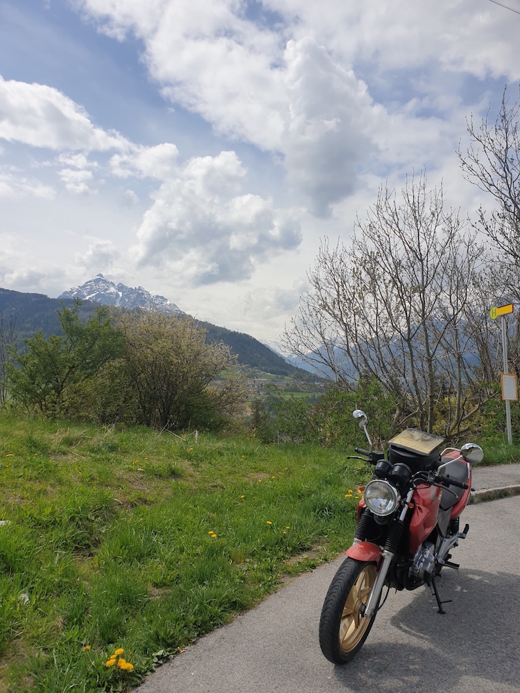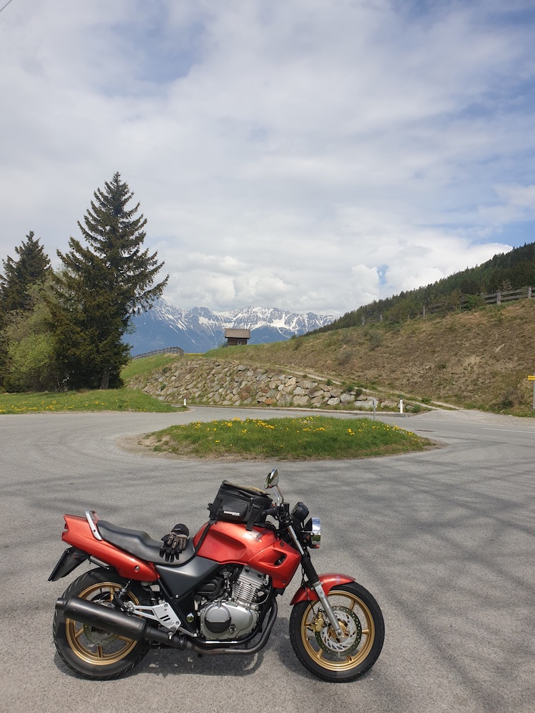 Also den Kreisverkehr hinter dem Zollhäus'l zum wenden genutzt und wieder nach Norden, und ab Steinach wurde es wieder wärmer und sonnig. Ab Matrei dann die echte "Alte Brennerstraße" über die Ellbögen, wo auch ein Fotostop eingelegt wurde.