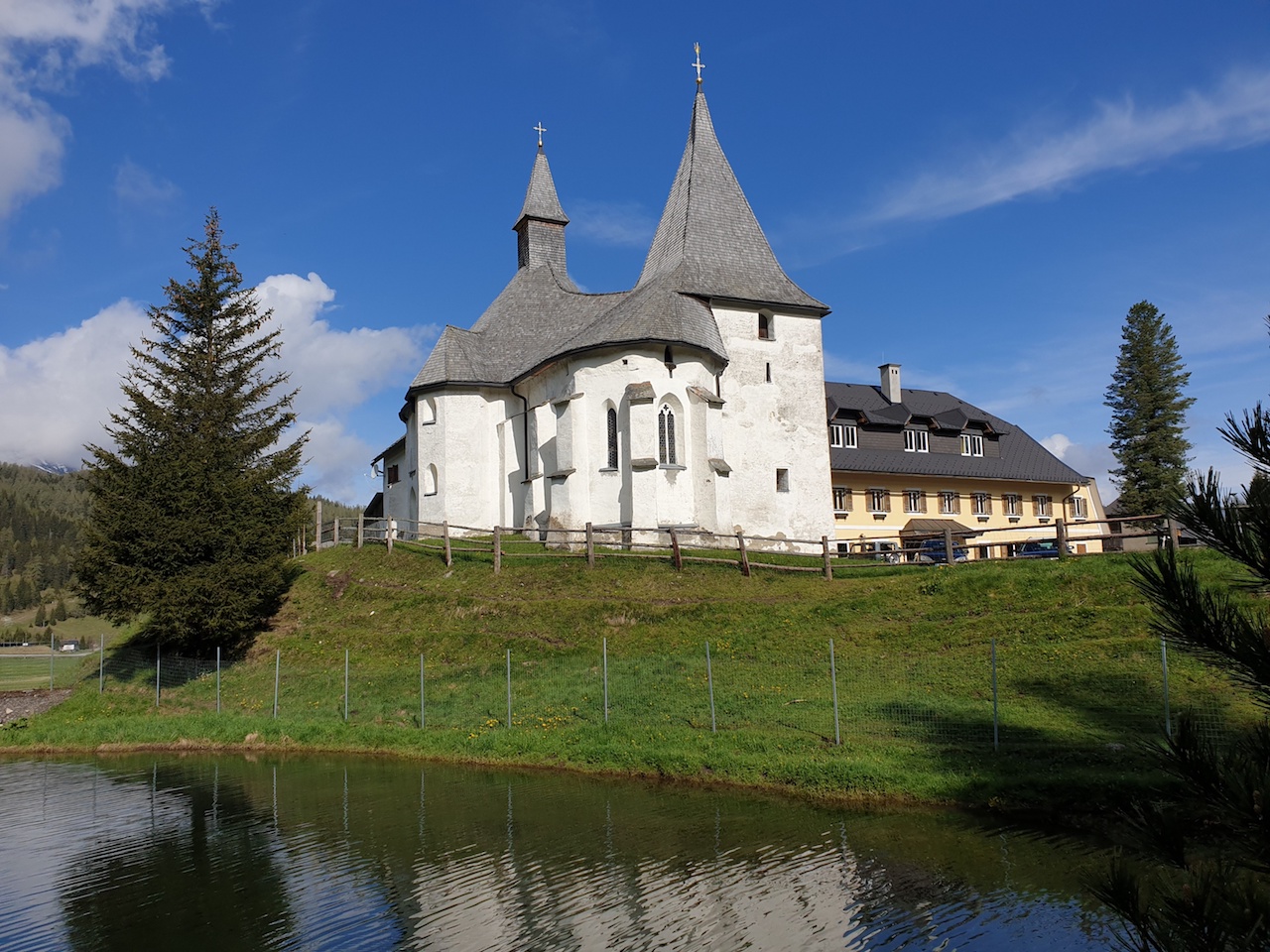 Los in Villach zum Ossiacher See, noch keine GTIs, deren Fahrer wahrscheinlich erst gegen Mittag die verquollenen Äuglein wieder aufkriegen - gut das! Mutterseelenallein die B98 hinaufgeschwungen, dann auf die Flattnitz, wo ich eine Pause machte, um die dortige Kirche zu besichtigen. Schon von außen beeindruckend. Aber leider zu und auch niemand da, der mir aufsperren wollte. Das Tal runter gebraust nach Stadl an der Mur und dort - quasi schon auf "Sölk-heimischen" Spuren - nach Murau.