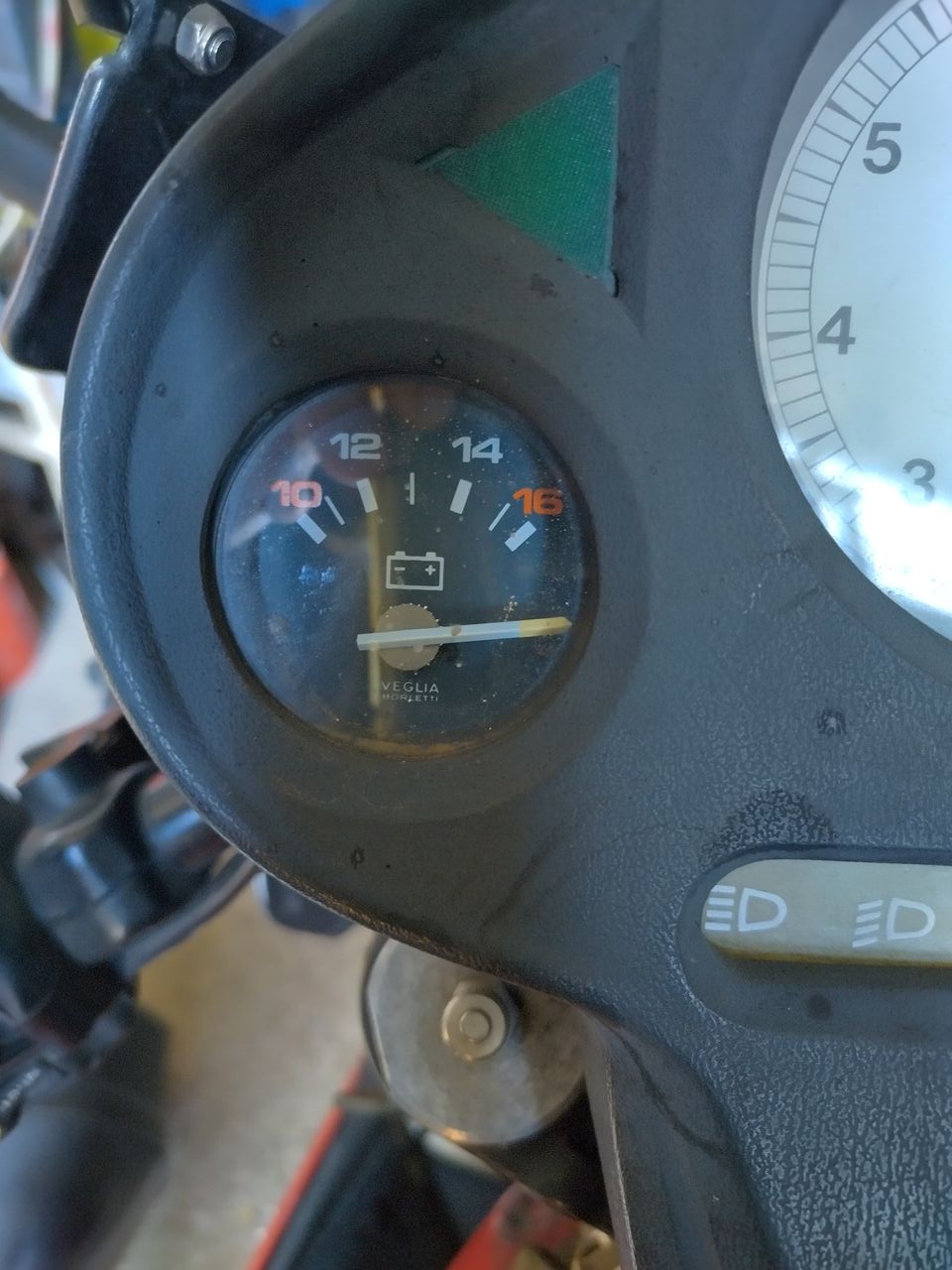 Der Drehzahlmesser in der Mitte vom Scheinwerfergehäuse lügt, denn er zeigt nix an.