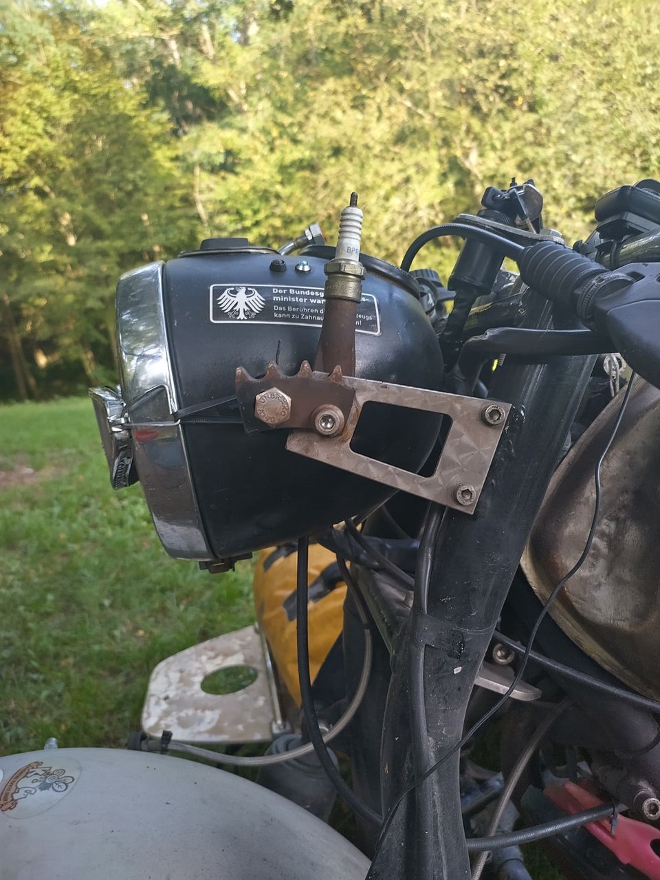 Der (also der Tweety) steht gut da, auf frischen (gerade mal 10 Jahre alten) Enduroreifen (Mitas C01). Ich montiere mein GPS und so steht vor mir ein Adventurebike im Retrolook, welches einen bis in die Mongolei bringen kann. Zumindest, sofern man vorher den Vergaser einstellt, was ich gleich mal mache. Den rissigen Kettenschlauch ignoriere ich erst einmal, ebenso wie den rund um die Entlüftung ölfeuchten Motor oder die ölige Gabel. Die Mongolei ist das Ziel, da muss man über solche Kleinigkeiten hinwegsehen!