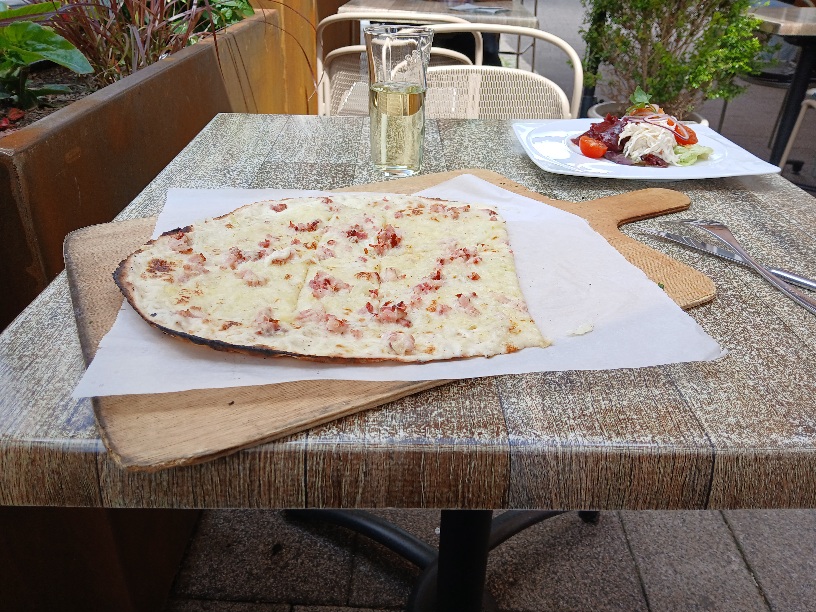 Auf kleinen, landschaftlich wunderschönen Straßen fahre ich über Ober- und Niedersteinbach und Lembach nach Weißenburg, wo ich einen vorzüglichen Flammkuchen in der pittoresken Altstadt zu mir nehme.