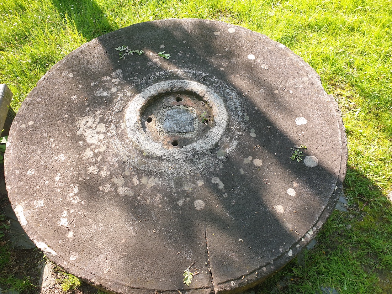 - Beeindruckender Mühlstein mit gut 2 m Durchmesser. Da braucht es schon ordentlich Wasserkraft ...