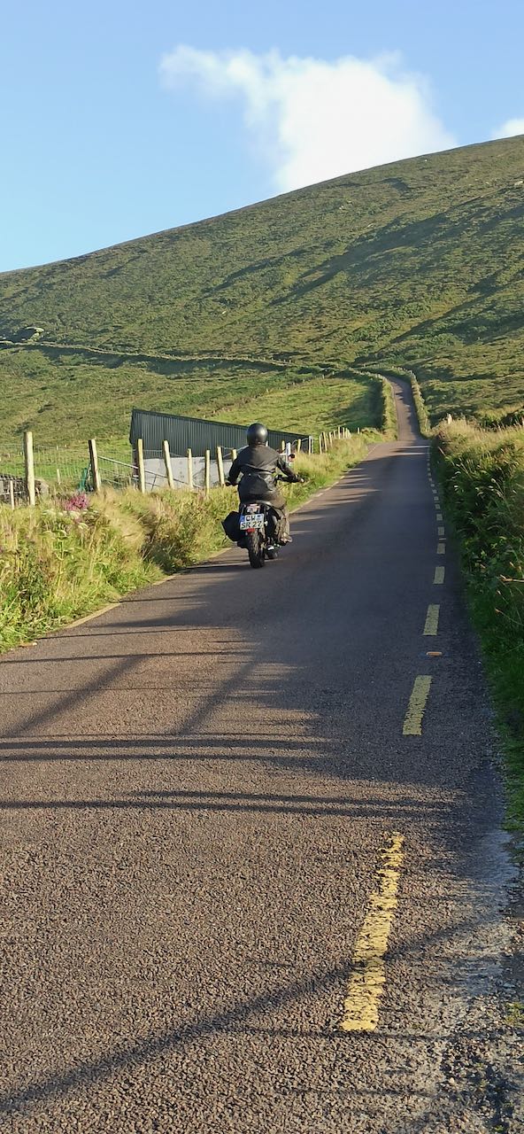 Zurück in Knight´s Town fliegender Wechsel auf Tweety und Sau, das Wetter passt ja jetzt und wir wollen den Skellig Ring umrollern. Der Weg per Fähre zur nächsten Tanke ist am kürzesten. Kaum bin ich damit beschäftigt mich mit dem widerborstigen Tankautomaten auseinanderzusetzen höre ich hinter mir eine bekannte Stimme: "Dreckbratze?!"