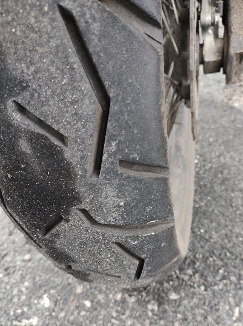 Es hatte auf der ganzen Tour fast immer nur einstellige Plusgrade. Der Reifen hatte , abgesehen von den zwei Glatteisstellen, immer super Bodenkontakt und ein tolles Feedback gegeben. Ein paarmal hatte ich sogar Fahrbahnkontakt mit den Rasten. Wenn man etwas mehr Straßenorientiertes auf dem Moped will, meine Empfehlung.