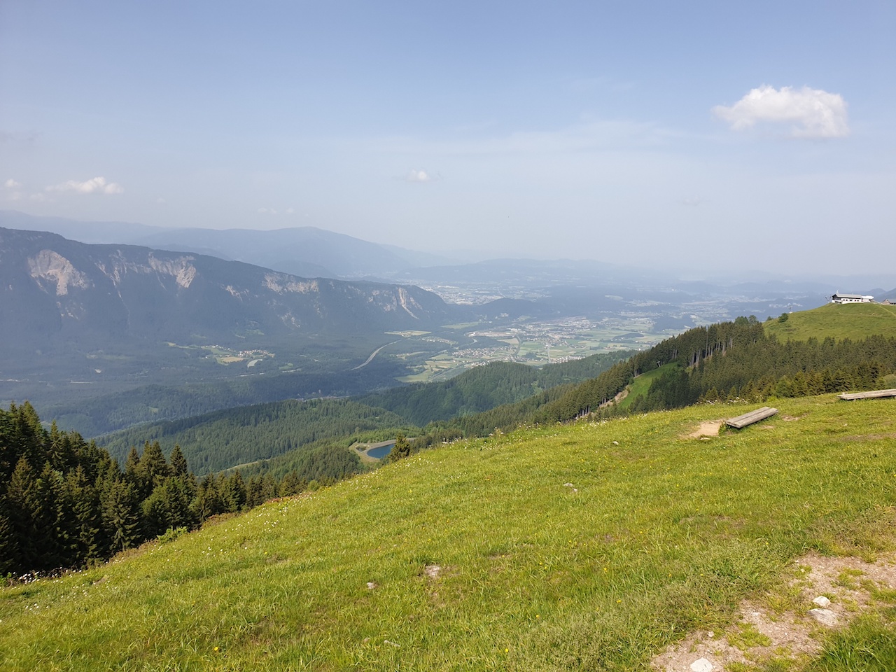 Bei Jenesien dann wieder aufwärts Richtung Mölten, wo man eine unwiderstehliche Sicht auf die Dolomiten hat. A Traum! Und nur wenig weiter gibt es ein Gasthaus, wo wir eine zünftige Marend genossen haben - gleichfalls mit berauschender Aussicht.