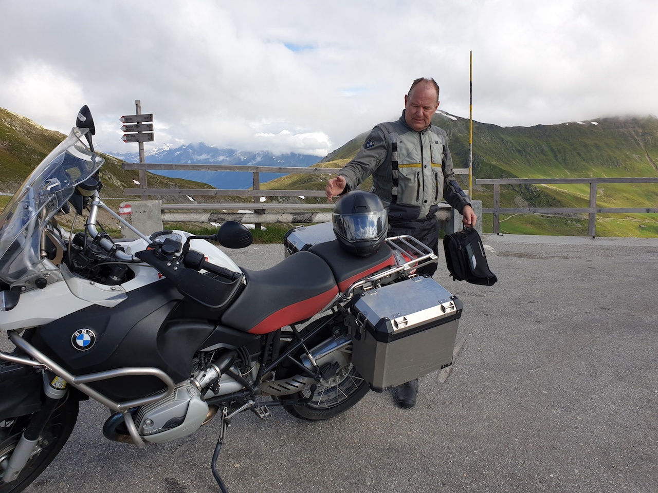 Heute bin ich mit einem lieben Freund eine rund durch die Bergegefahren. Vorab: es war vielleicht nicht der beste Termin, da sich alle deutschen Motorradfahrer gleichfalls über die Pässe hergemacht haben. Und nicht alle können fahren ... Das Wetter war von kühl-bedeckt bis sonnig-heiß - aber: keinerlei Regen!