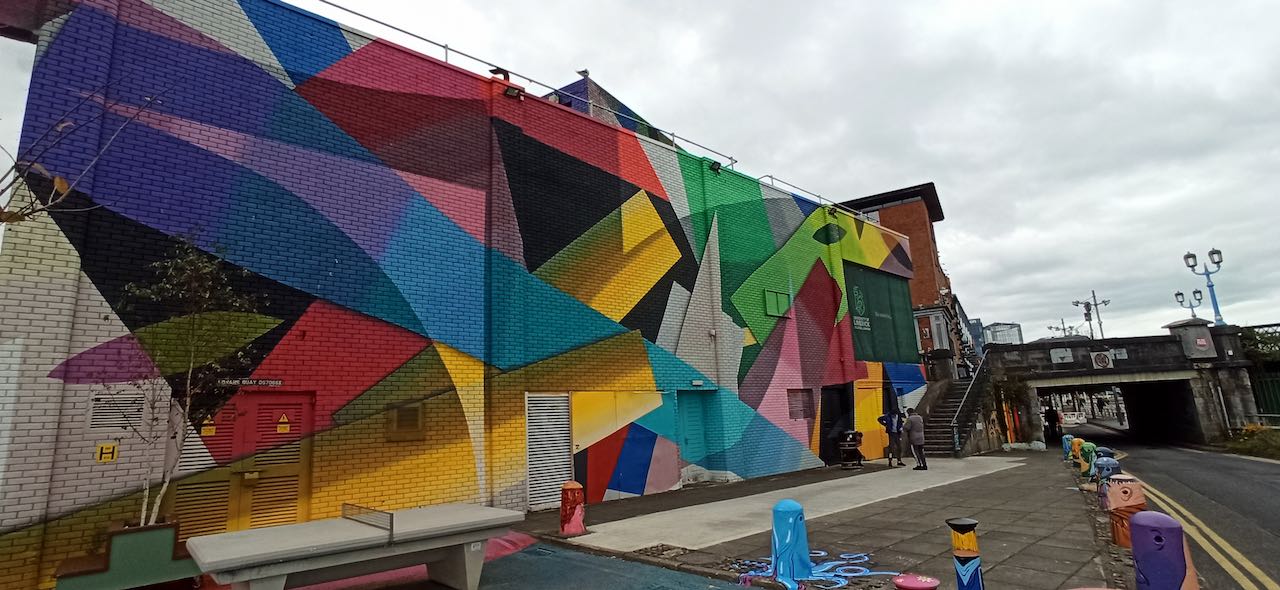 Auch das moderne Stadtzentrum hat ihre bunten Ecken, wie hier bei der Kunsthochschule. So können profane Betonpoller aussehen! :-)