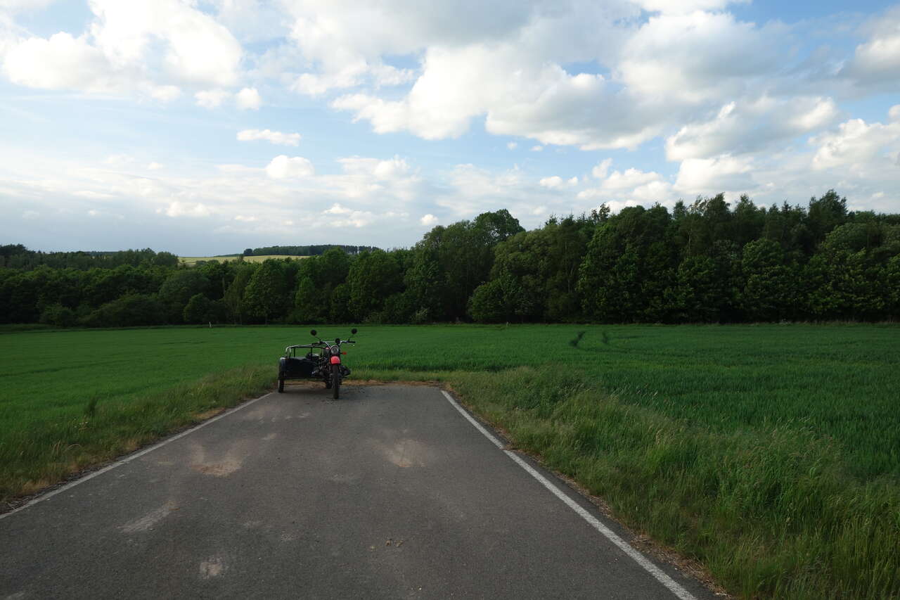 Rückfahrt, diesmal wollte ich wieder westlich an Prag vorbei, denn ich wollte noch durchs Erzgebirge gurken. Das Wetter war gemischt, kurz vor dem Erzgebirge war mir dann für kurze Zeit erstmalig warm an diesen drei Fahrtagen. Da ich durchs Erzgebirge fahren wollte, fuhr ich an seinem Fuß entlang Richtung Westen. Als ich die mächtige Erdscholle hochfuhr, wurde mir wieder kalt und blieb dann so, bis ich zu Hause ankam. Aber immerhin konnte ich durchs fast leere Erzgebirge den Boxer mal ordentlich durch die Kurven scheuchen. Leider hat zu Hause kein warmes Essen auf mich gewartet. Eigentlich gar kein Essen, denn der Kühlschrank war leer. Also musste der Pizzalieferdienst aushelfen...
