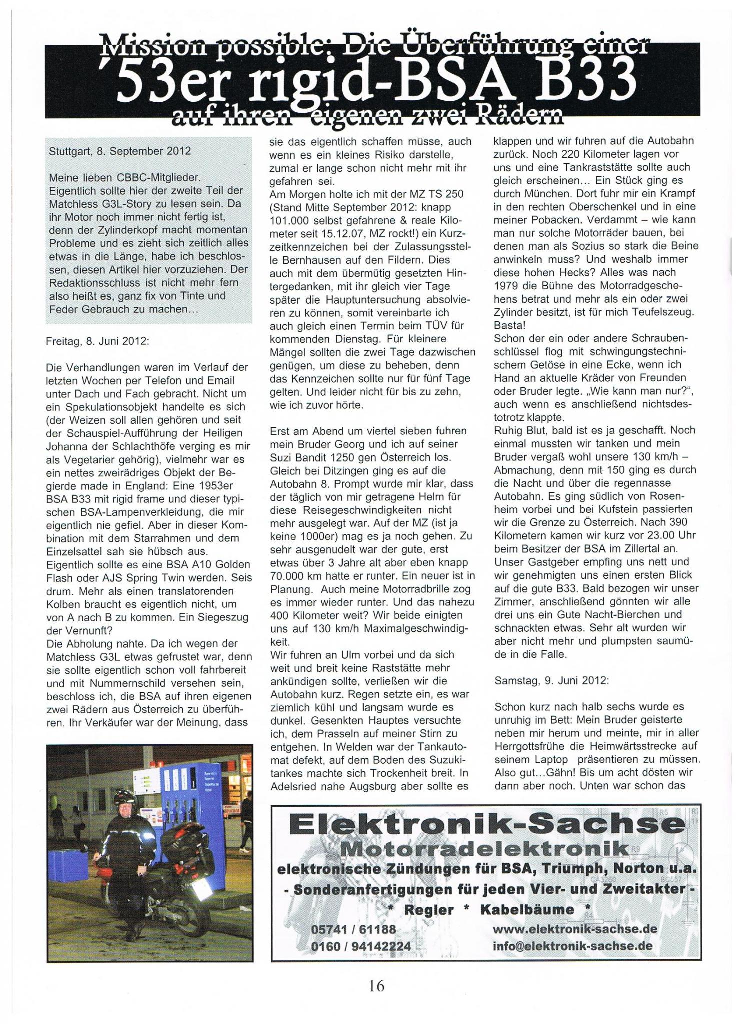 Es handelt sich um die 500er BSA B33 von 1953 mit rigid frame, die ich Juni 2012 auf ihren zwei Rädern aus Österreich überführte. Mein Bruder Georg und ich fuhren auf seiner Bandit 1250 dort hin.