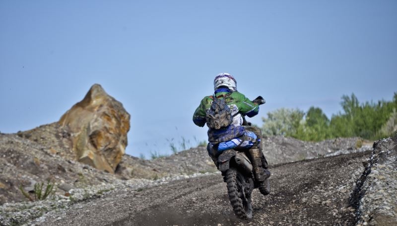 Weiter durch die tiefen Löcher des Tagebaus und bei Runde 3 ist es aus schon 12 Uhr und der erste Renntag vorbei. Zum Ziel, auschecken und zurück ins Camp zu Moni. Ich bin so fertig dass sie mich aus der Montur schälen muss und ich fast zeitgleich einschlafe.