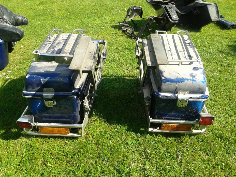 Zum Verkauf stehen 2 Seitenkoffer und 1 Topcase. Soweit ich das sehe sind die original von Harley-Davidson, montiert waren sie aber an einer Honda Goldwing 1100. Die (Eigenbau-)GW-Träger gibt´s dazu. An einem Seitenkoffer ist ein Schloß defekt, am Topcase fehlt an einer Seite die integrierte Beleuchtung. Ansonsten vollständig. Der Lack ist unter dem vielen Staub noch ziemlich gut, es ist auch nix gerissen oder so. Meine Preisvorstellung wären 80 €uro zzgl. Versand oder AiA-Logistik.