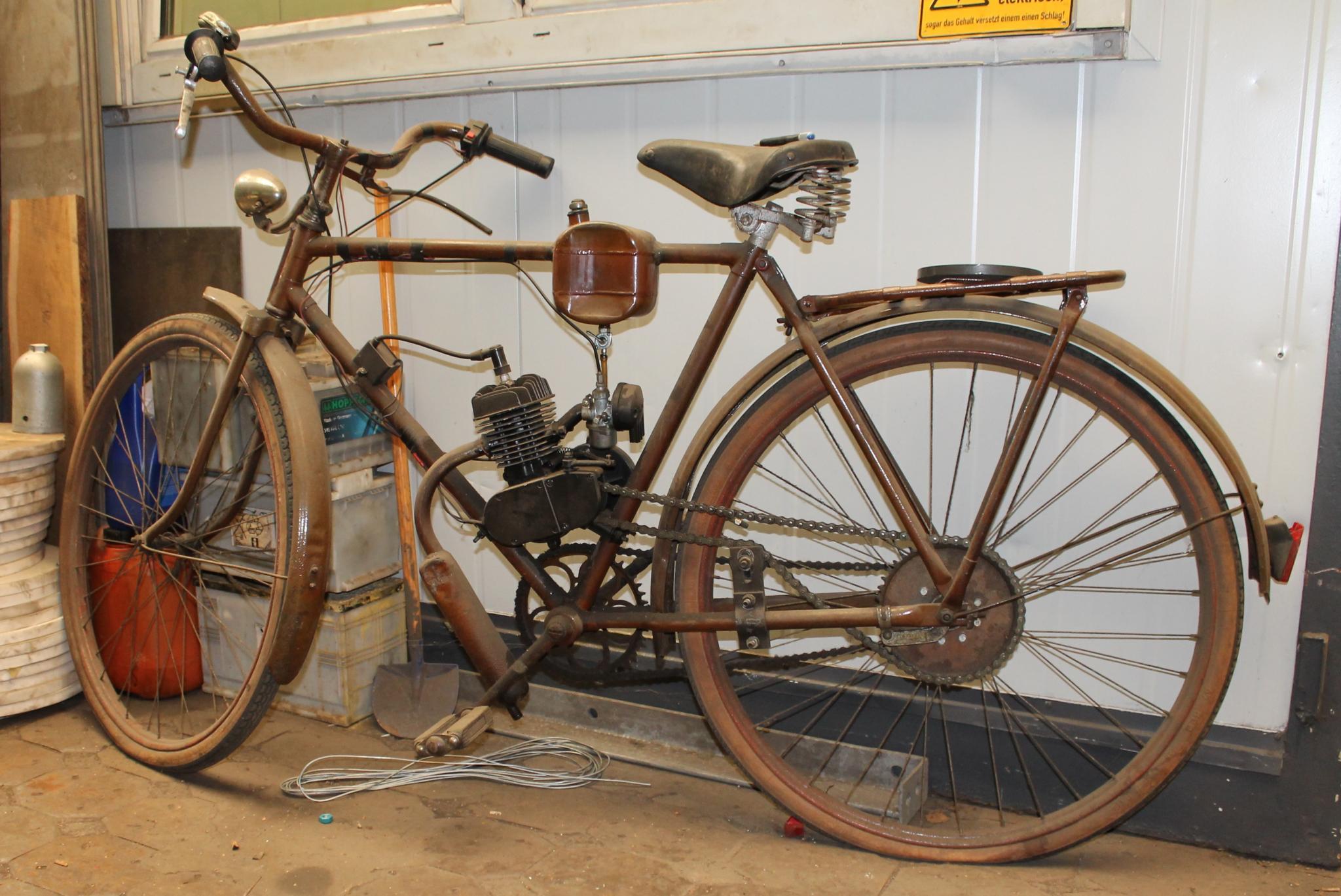 Sowas steht ohne gscheiten Zündfunken (im Leerlauf) in einem chinesischen Fahrrad bei mir im Carport. 80ccm und die chinesische Bandbremse im Hinterrad, a Graus![]()