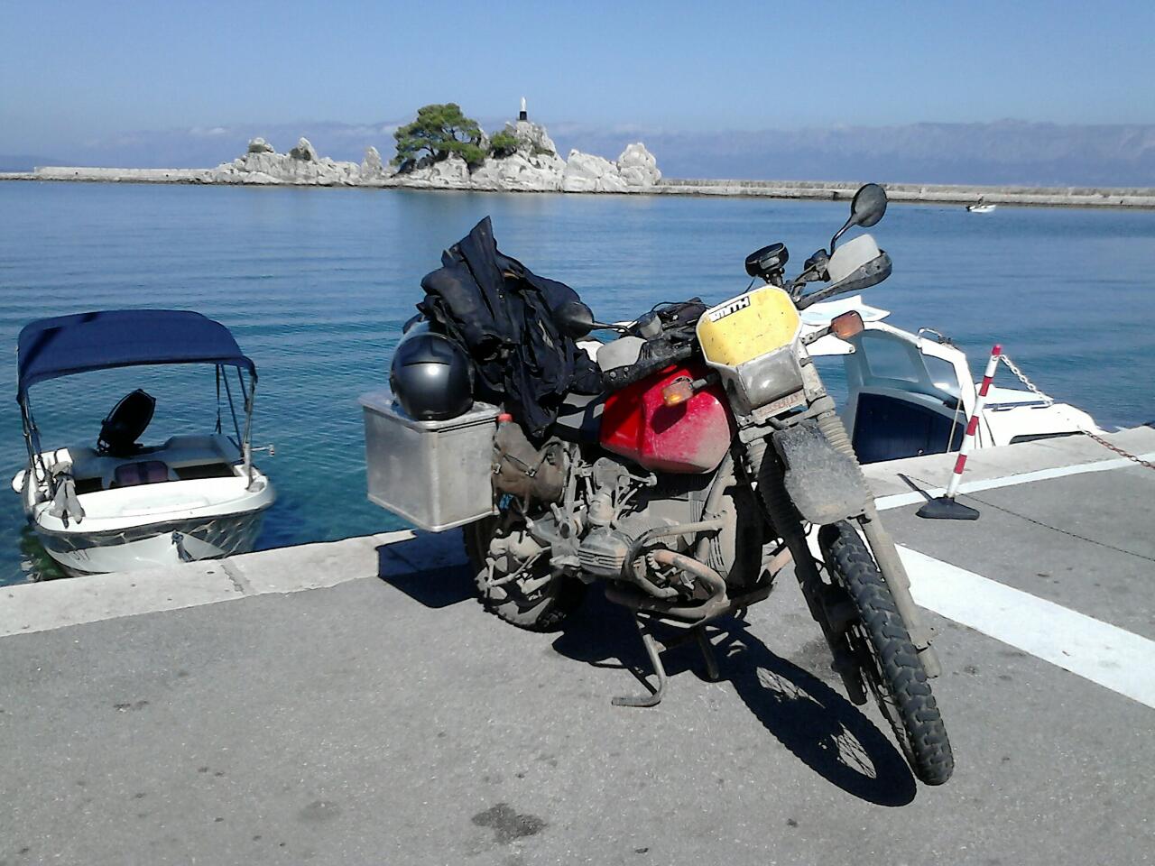 sass bis Grad eeben in einem lauten kroatischen cafe, während ich auf die Fähre warte. nun steh ich neben dem mopped, anschnur kwasi :-P
