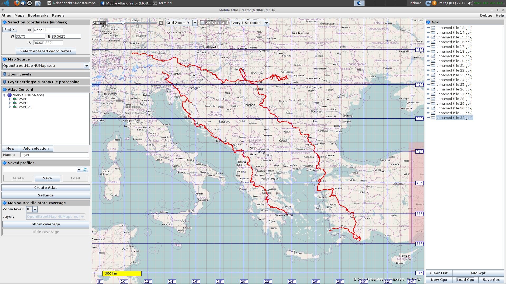 Heute: die ganze Nacht und auch morgens bis ca. 10 hat's geschifft ohne ende. Danach wurde es was weniger. Also das patschnasse Zelt verpackt und los. Entsprechend war die Fahrt: eklig, klamm, nebelig, nieselig. Erst kurz vor Slowenien auf der 32 wurde es dann besser. Und gleichzeitig mit der trockenen Straße begannen die kurven. Aber so richtig!