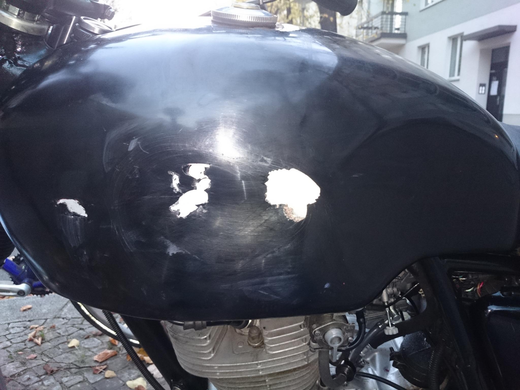Und es ist mit 2-K überlackierbar. Ansonsten Glasperlenstrahlen. Bei der Delle habe ich keine Idee ...