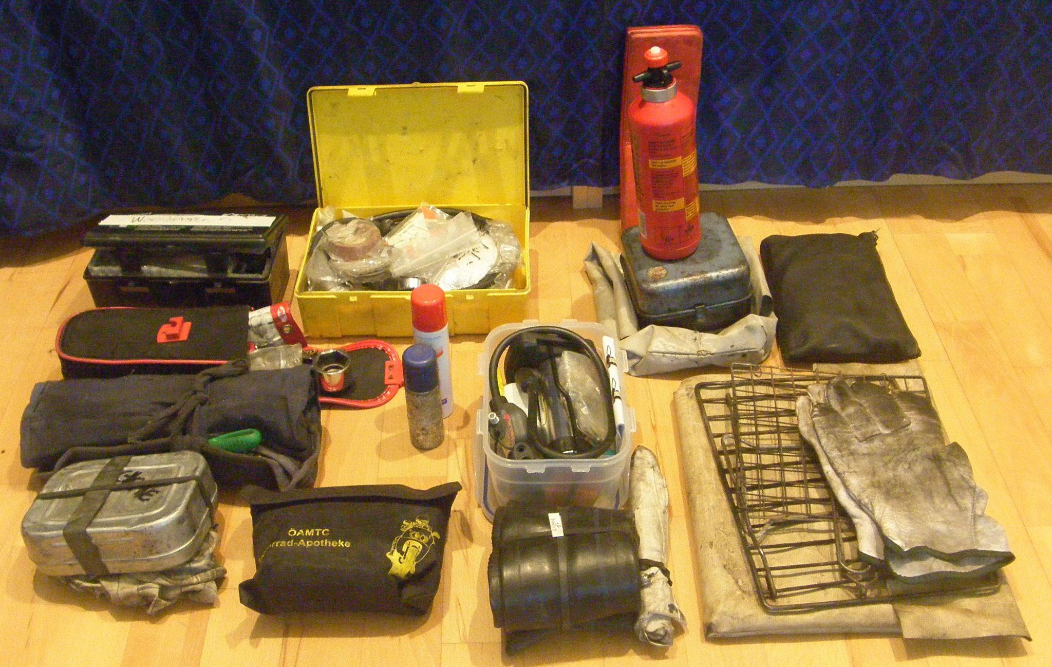 TanktaschenRegenzeug, und diverses unempfindliches weiches Kleinzeug. Aus billigen Fahrradpacktaschen gebastelt.