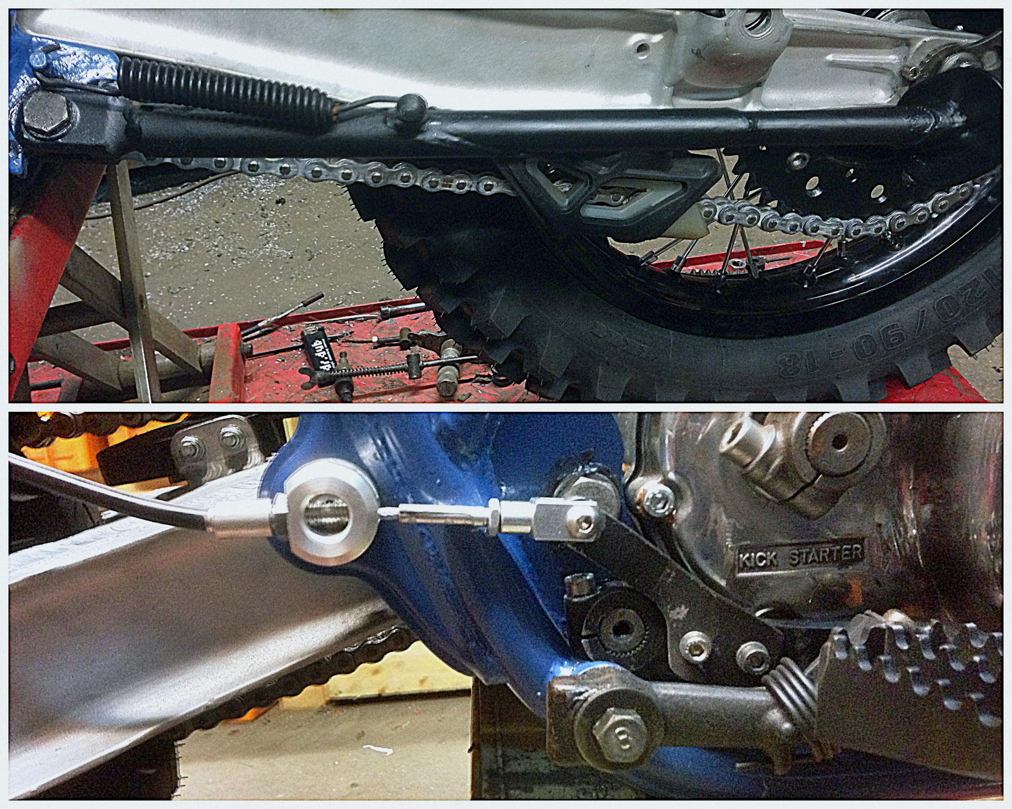 Schäden: Seitenständer fast abgerissen, hing aber noch am seidenen Faden dran...die Schweissnaht zwischen Rohr und Befestigungsauge ist zerbröselt...und das Nummerntafel Befestigungsblech ist wieder mal eingerissen...hat der Hinterreifen wohl wieder etwas gefressen...jetzt mach ich ein Blech wo das Taferl waagrecht steht ...da kann dann nix mehr streifen...
