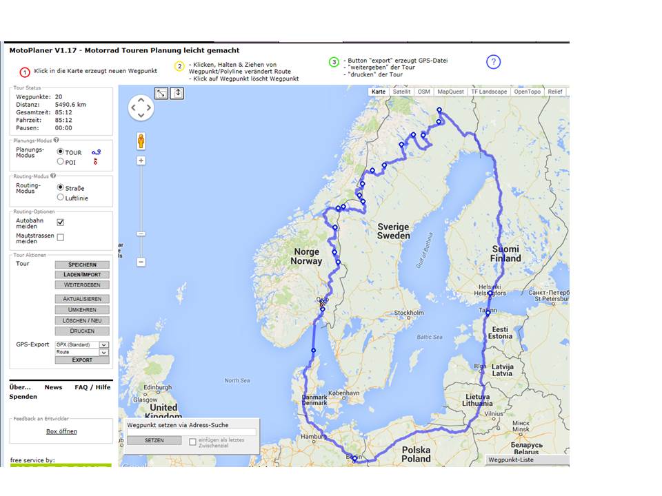 2. Die ebenso Harten fahren Travemünde-Helsinki mit der Fähre und auf Straße nach Rovaniemi, über Oslo-Kiel zurück. Also die Ostseerunde mit rund 2.200km.