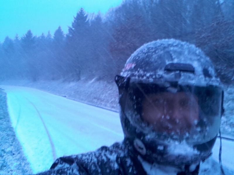 Bei -5 Grad war ich heilfroh über die tolle Mechanik des alten System 3 Helms. Man kann das Visier während der Gahrt leicht nach vorn ziehen, so daß oben und unten 2 mm Luftspalt entsteht.