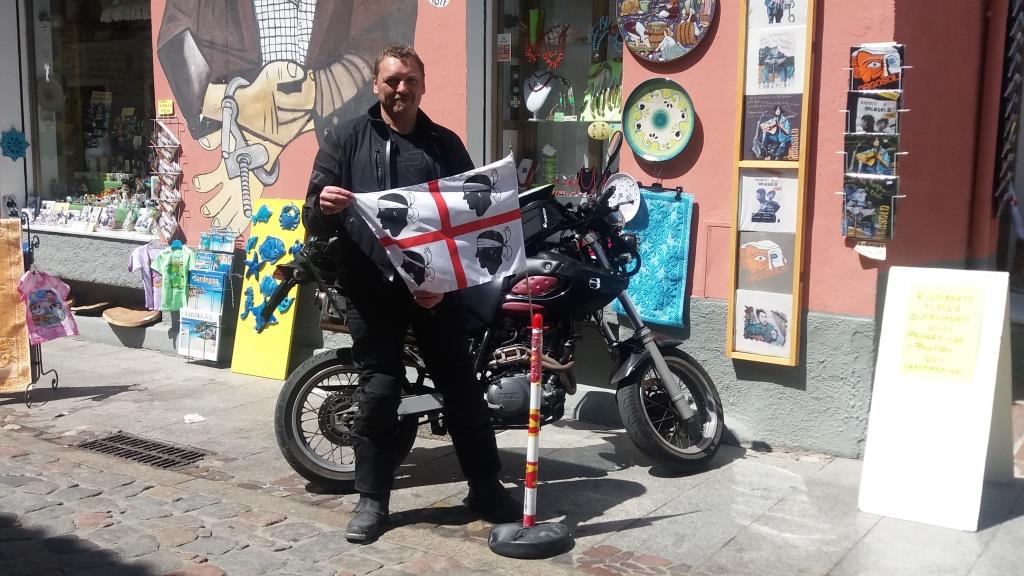 Hab mich mit Suzanne auf Ihrer Husqvarna TR 650 Strada am 8. bei Lörrach getroffen, übers französische Jura, Massiff de Chartreuse und Provence in 3 Tagen zur Nacht-Fähre Toulon – Porto Torres auf Sardinien
