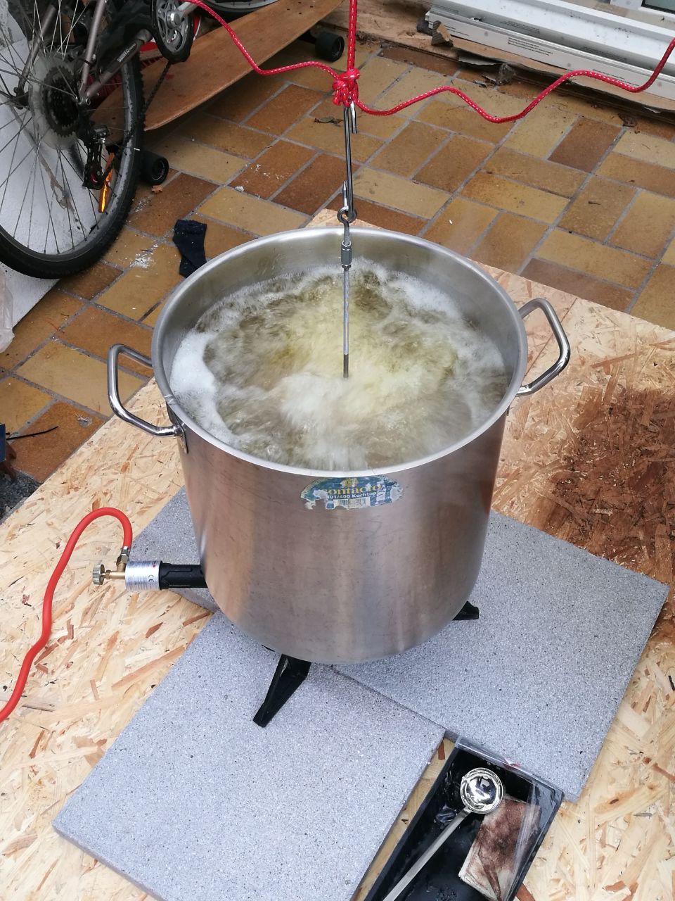 Ich hab zum Mittagessen ein bisschen gekocht und frittiert.