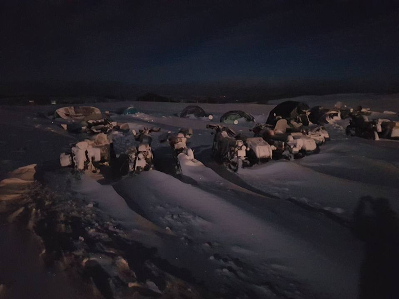 Ein geschätzes Drittel der Zelte stehen nicht mehr, ein Typ liegt völlig zugeschneit in seinem zerrissenen Innenzelt, das Aussenzelt hat es weggeweht, und wir rufen und schütteln ihn in der Sorge ob er überhaupt noch lebt. Plötzlich bewegt sich der Schneeberg dann doch und er schaut uns völlig verwundert an. Im grossen Festzelt, in dem die Bar untergebracht ist, sind den ganzen Tag 4-5 Mann beschäftigt, zu verhindern, dass das Ding wegfliegt. Teilweise ist so viel Schnee in der Luft, dass ich nicht von meinem Zelt bis zum Barzelt sehe, das nur 20 m entfernt ist.
