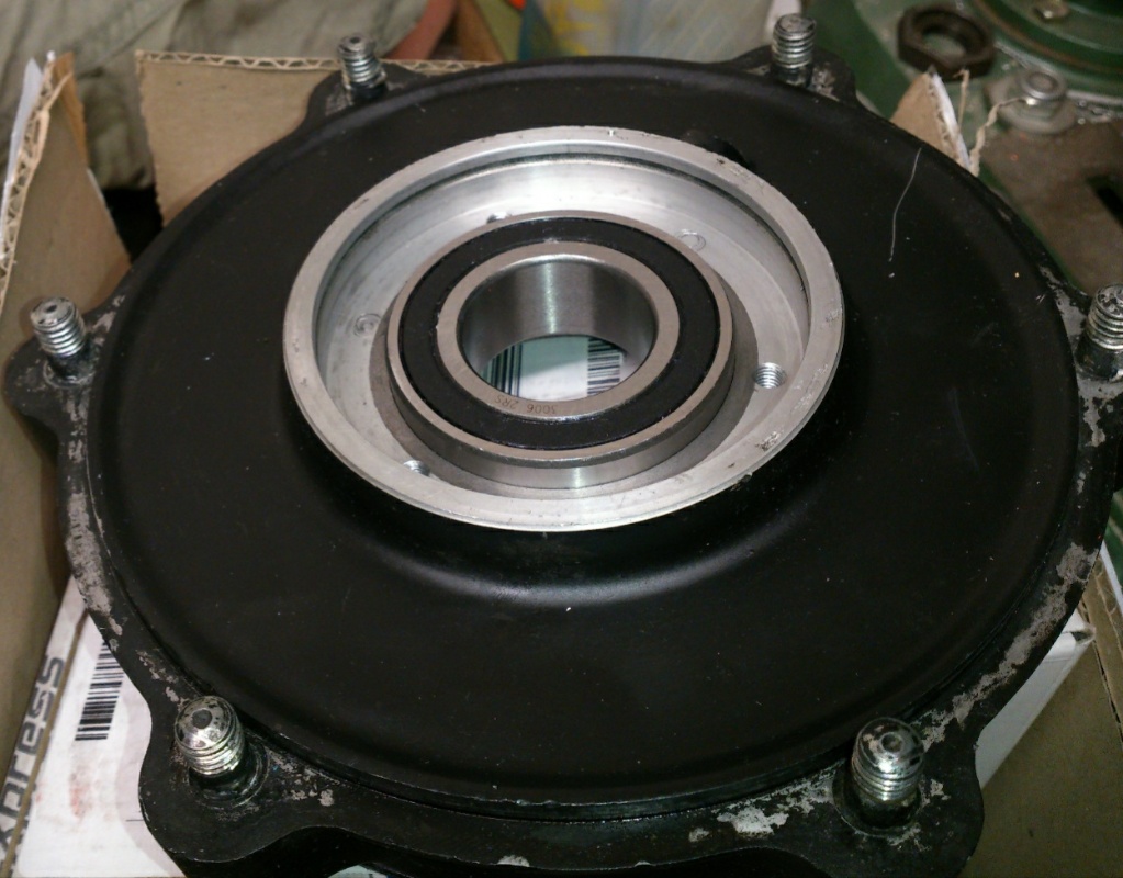 Der KBT wurde nach der Kettenblattzentrierung ausgerichtet, und der Lagersitz zusammen mit der ehem. Dichtscheibenbefestigung ausgedreht, damit das koaxial ist. Dann passt auch die Haltescheibe, die an Innen- und Aussendurchmesser einen Presssitz von ca. 2/100 hat. Die Gewinde in der Scheibe sind zum Abdrücken, brauchts aber nicht, weil man das Lager ja von hint auspressen kann.