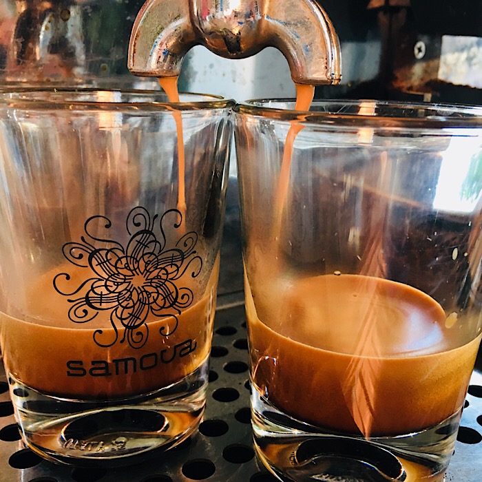 Die Kaffeebohnen kommen im Ganzen, es sind Espresso-Mischungen von Kleinbauernkooperativen aus Chiapas und Costa Rica. Gemahlener Kaffee hat keinen Sinn, denn er ist zu grob und setzt das nicht frei auf das es wirklich ankommt: Das Kaffeefett! Man mahlt seinen Kaffee selber, bis die Kaffeemühle zu singen anfängt, also knapp vor dem Überdrehen ist. Sie läuft dann schon ohne Widerstand, denn es gibt nichts mehr zu mahlen. Greift man dann den Kaffee an, spürt man dass er sich fettig anfühlt.