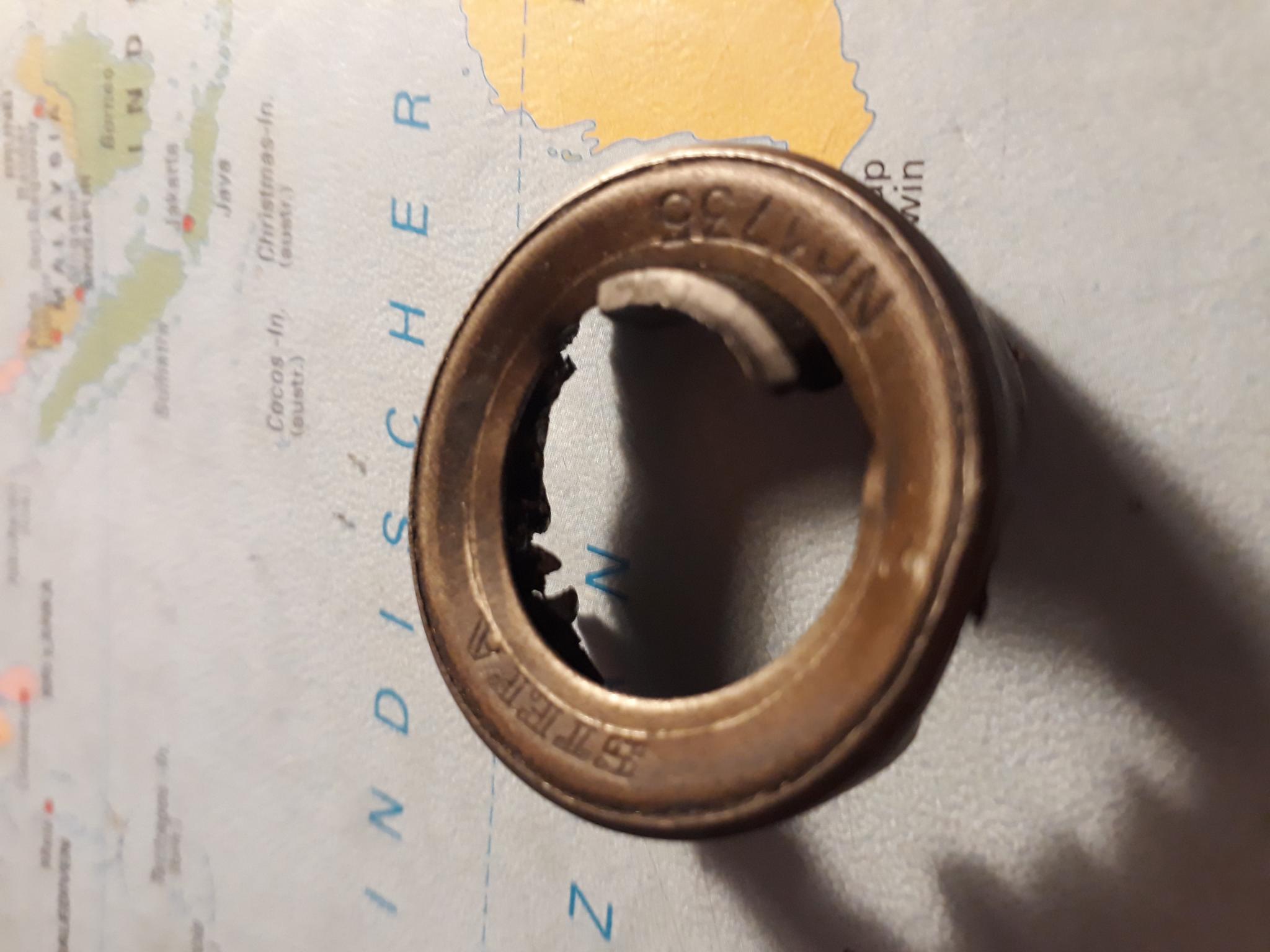 Die Entnahme gestaltete sich recht schwierig, handelte es sich hierbei um einen Stefa Trelleborg Nr.1735. Sowas hab ich noch nie gesehen. Ein Dichring in Blech gekapselt und mit dem Gehäuse verbacken. Ich kenn die einseitig mit Blech umhausten Ringe, diese Version bei der nur die Dichtlippe raushängt nicht.