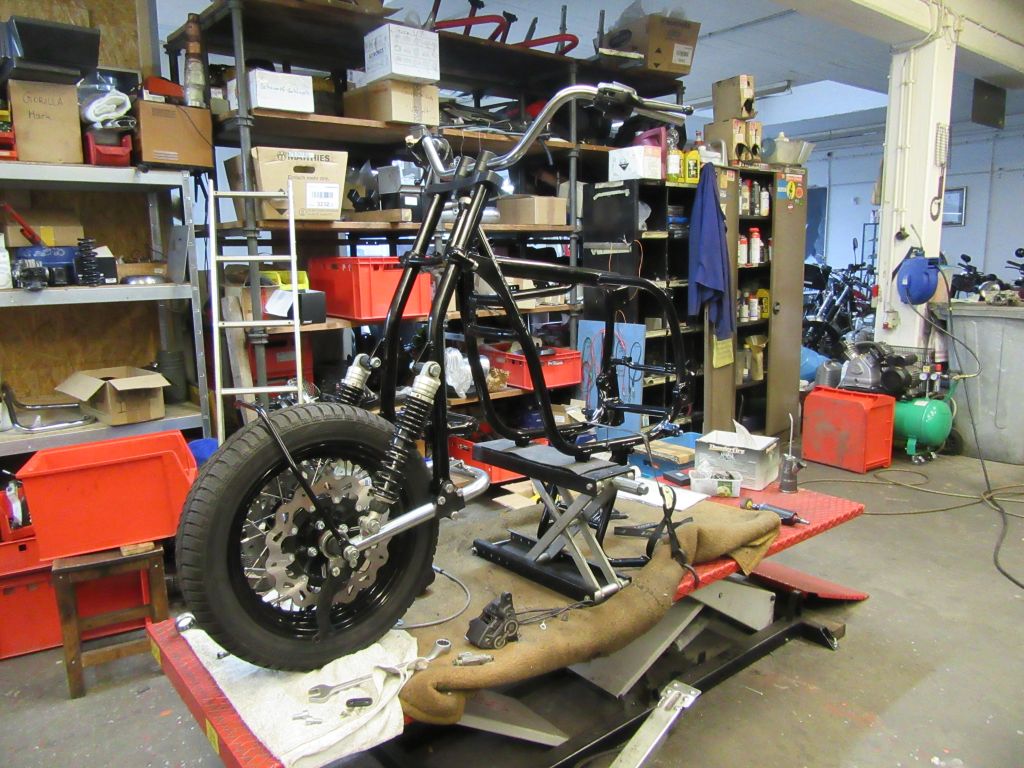 Beiwagen ist recht leicht (für Martina kommen da ca 25 kg Blei ins Boot), macht aber richtig Spaß. Ich hab die Spurweite recht groß gewählt, damit der Hebel des Beiwagens groß. Dann steigt der Beiwagen nicht so schnell und ist damit leichter beherrschbar. Die Bremse ist mit den Galfer-Scheiben brutal, hinten sind neue TRW Backen drin, am Beiwagen eine kleine Brembo- Zange mit Sinterbelägen und einer dazu passenden Rollerscheibe, die über die Handbremspumpe aus dem HD-Zubehör mitgebremst wird.
