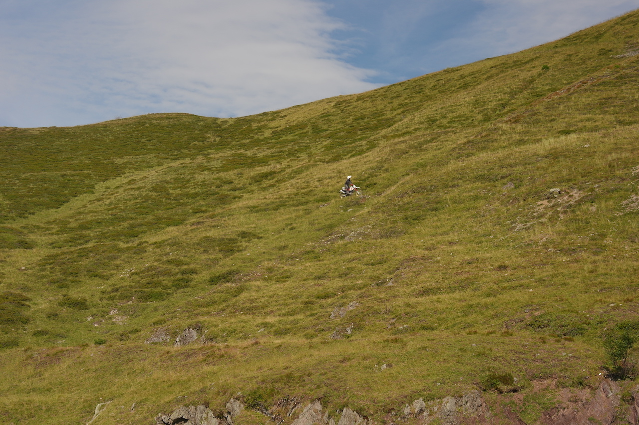 An die DR im Straßenmodus hatte ich mich jetzt einigermaßen gewöhnt, die neuen Anakee Wild waren eingefahren und für gut befunden worden, ab jetzt kommt der Schotter.