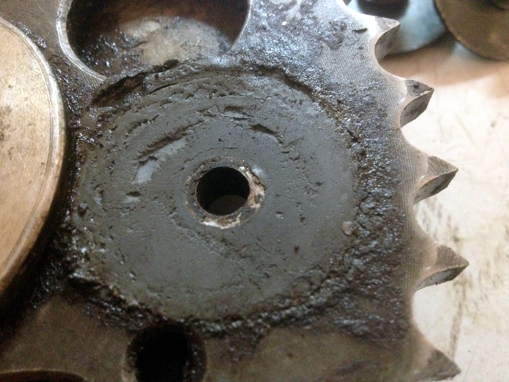 Die Probe mit aufgelegter, neuer 428er Kette zeigt - meiner Meinung nach - dass die Ritzel tatsächlich noch ganz in Ordnung sind.