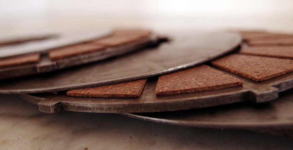...also Photos der zerlegten Kupplung. Die mit Kork neu bestückten Scheiben waren bis gerade eben in der Presse, Photos gibt´s daher erst morgen.